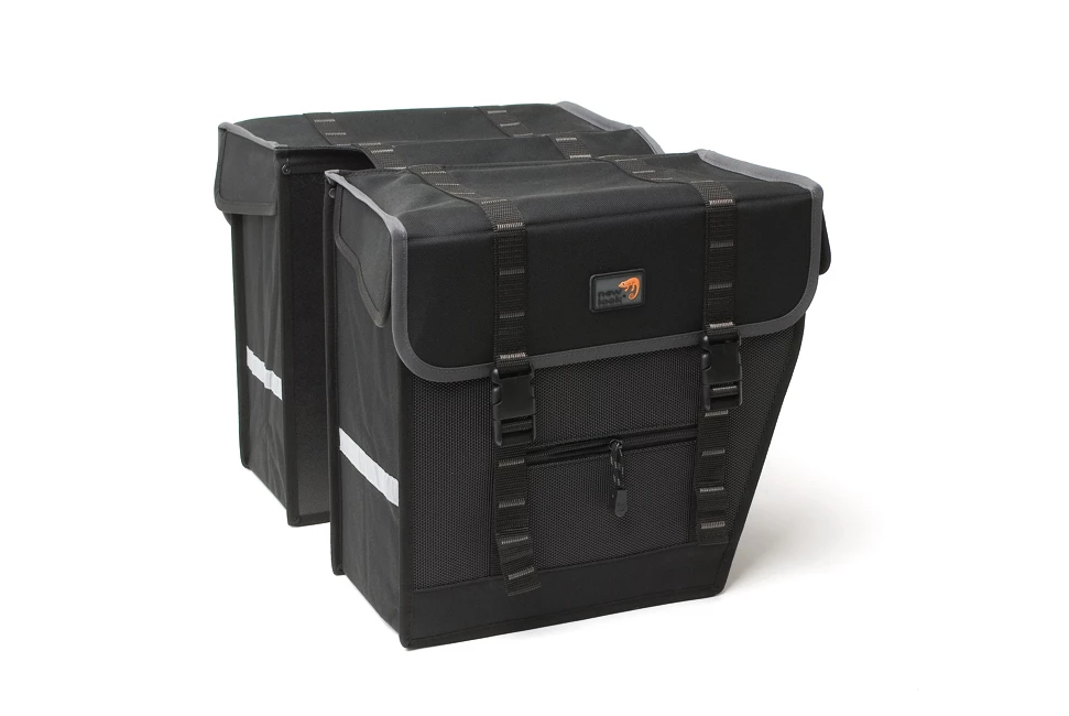Double sacoche de vélo Superior Maxi encore plus spacieuce (42L) et imperméable ! Grâce à ses renforts de chaque côté du sac, protégez les affaires de vos sacoches des chocs liés au transport.